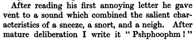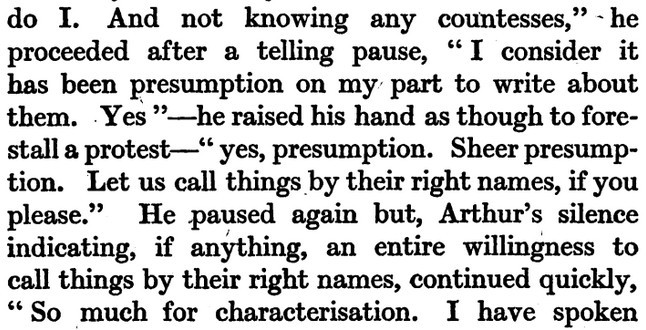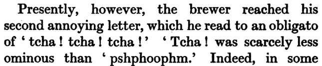 [I note that this is the second time Hewlett characters have interjected a *singular* "fiddlestick" for us--so now we have a pair, though I guess a violinist really needs only one at a time. Likewise, the "permutations and combinations" business had its double in the last WH book I read.)]***A beastly-looking man with a face like a tooth.***It was difficult to be impressive in a blanket, but Arthur managed it.***uttering shrill, staccato oaths***He was in great disorder; his wig had fallen off, and his carefully contrived false stomach had worked 'round to his back. [Alas, this book has no illustrations.]***Meaker drifted about like a damaged but still inflated balloon.***[Bonus: A presumably fictitious author writing sensational novels under the name "Zox."]