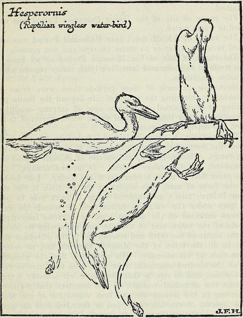 #vintage illustration #dinosaur #illustration #prehistoric #water bird #hesperornis