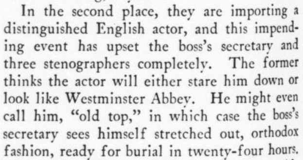 ***the Earl of Wainscoat***All answers should be plainly typed in invisible ink.***The best plays are those which have never been written at all. [Alexander Woollcott]***They are in a New York hurry. Everything fascinates them, because they are so blasé. [Samuel Hoffenstein]***He's been on a series of wild-goose chases, or wild-geese chase. [Hoffenstein]***