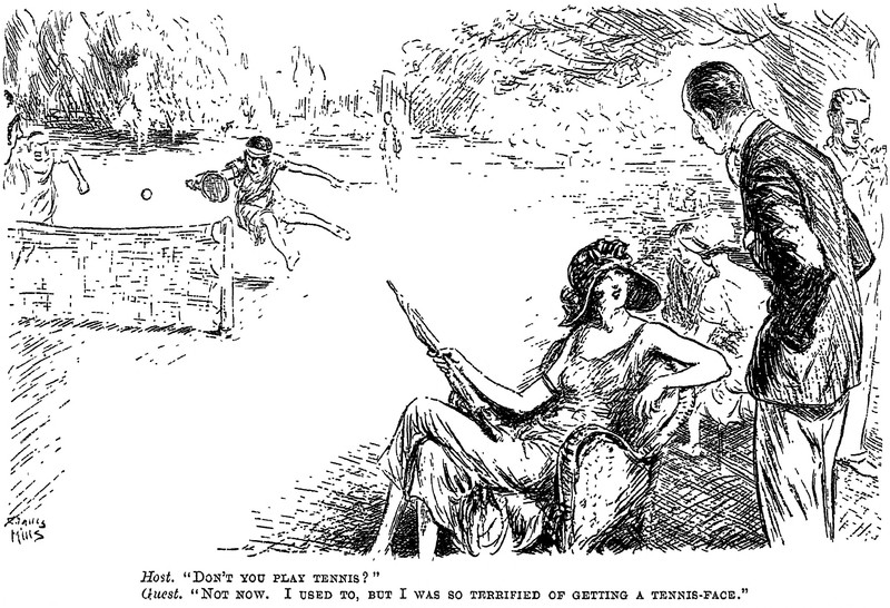"Terrified of getting a tennis-face."  From Punch, 1923.