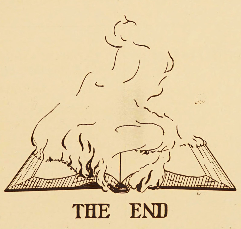 #vintage illustration #on fire #vintage yearbook #yearbook #book #the end #illustration #1910s