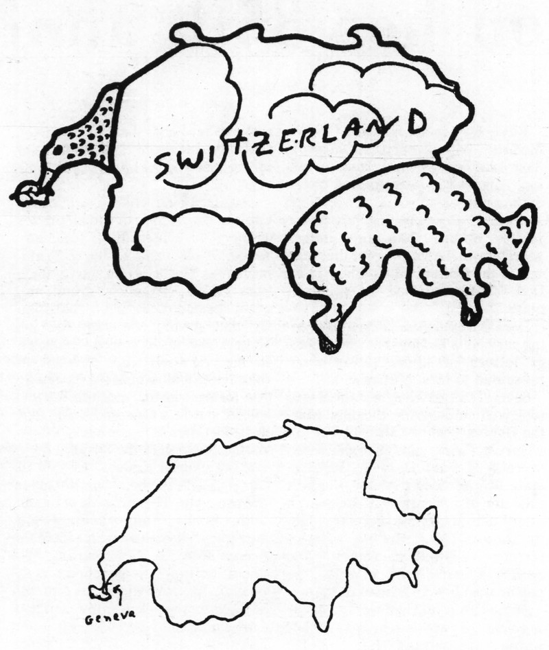 #vintage illustration #map #strange map #switzerland #illustration #1980s
