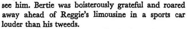 ***"The latest lady's pyjamas"[Though I'm not certain, this seems to be an oath!]***His smile had the force of a dig in the ribs.***Bonuses:A nightclub called the Upsidown"Her Highness Princess Somebody" becomes, a page later, "Her Highness the Princess Whatnot."
