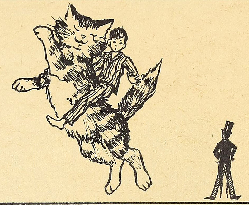 Here's today's flying away on a giant kitten.  From We Can Read Mr. Whiskers by Gerard, McInnes & McLean, 1962.