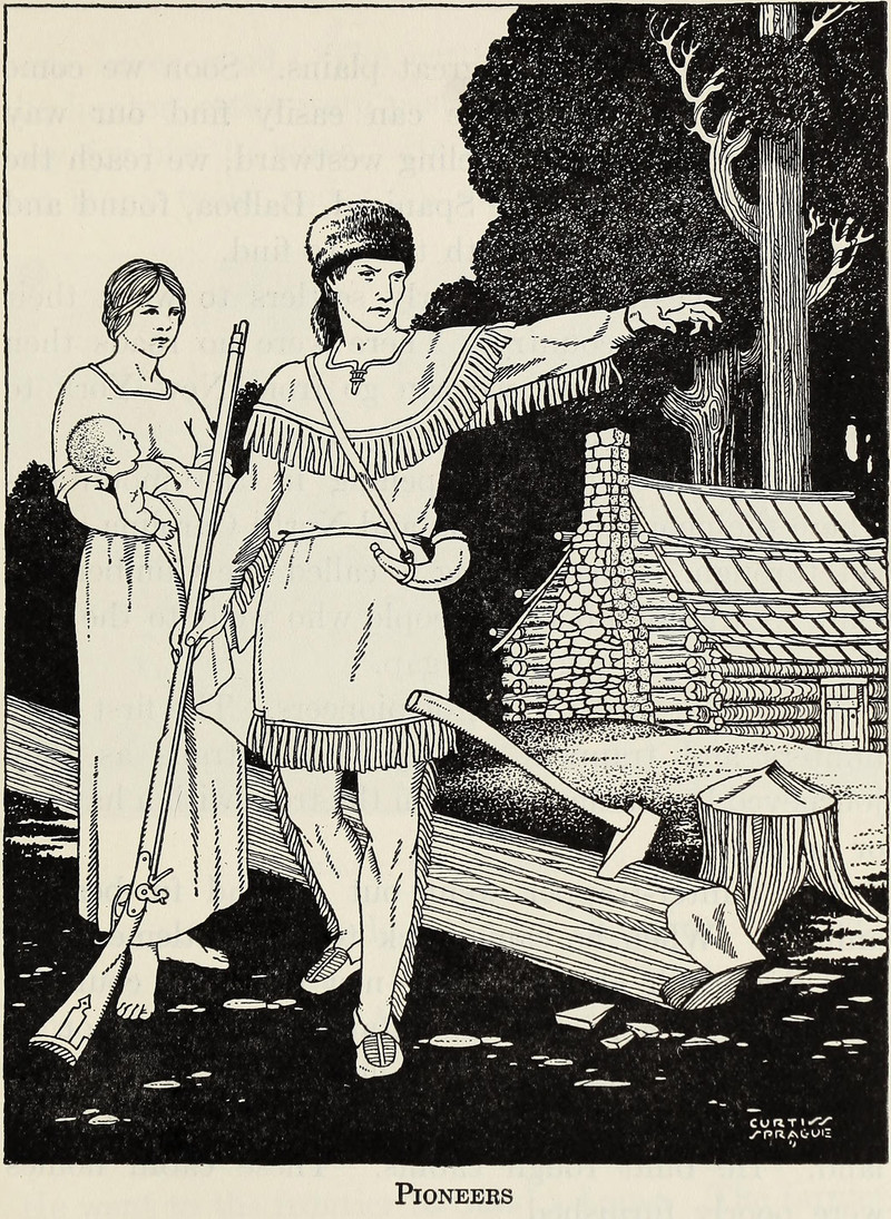 #vintage illustration #1930s #illustration #log cabin #pioneer