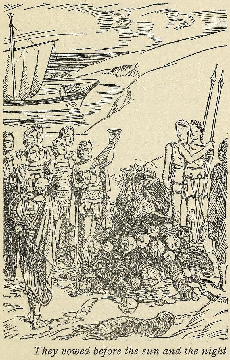 "They vowed before the sun and the night."  From The Heroes, or Greek Fairy Tales For My Children by Charles Kingsley and illustrated by Helen Monro, 1855.
