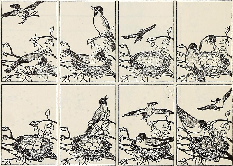 #vintage illustration #nest #bird #1940s #illustration