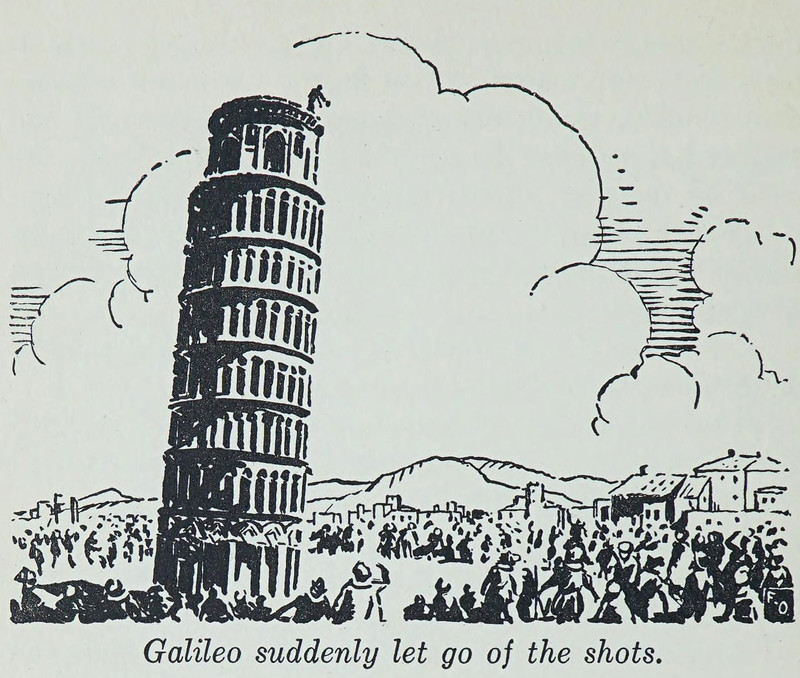 #vintage illustration #1930s #gravity #illustration #leaning tower #galileo