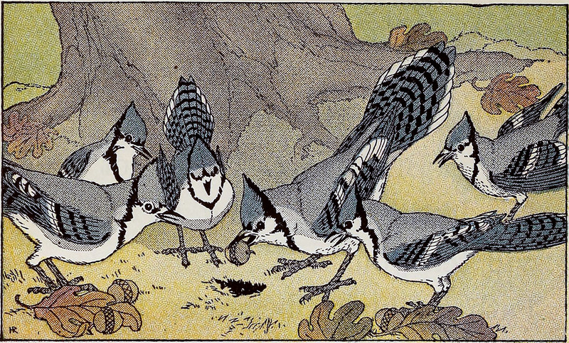 #vintage illustration #bird #acorn #1930s #illustration #blue jay #bluejay