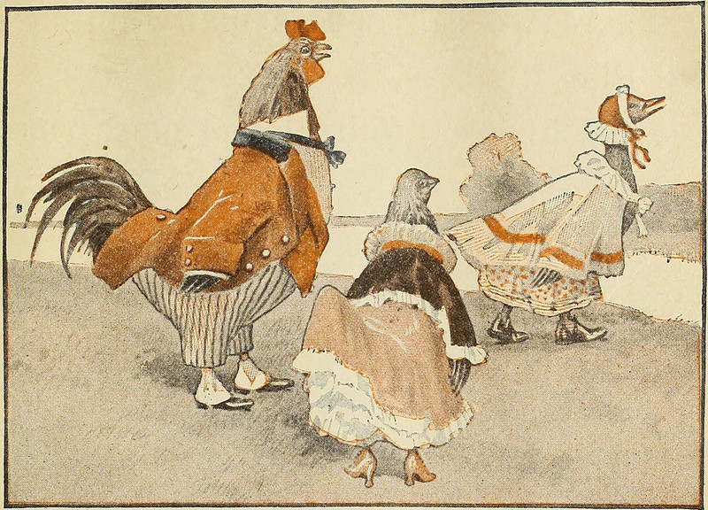 #vintage illustration #anthropomorphism #chicken #rooster #illustration #1910s