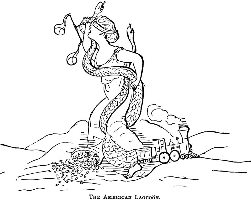 "The American Laocoön," from The Comic History of the United States by John D. Sherwood, 1870.