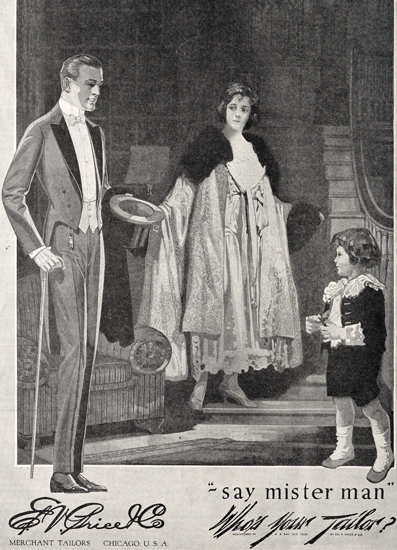 A question all children ask of adults: "Who's your tailor?"  From The Saturday Evening Post, 1917.