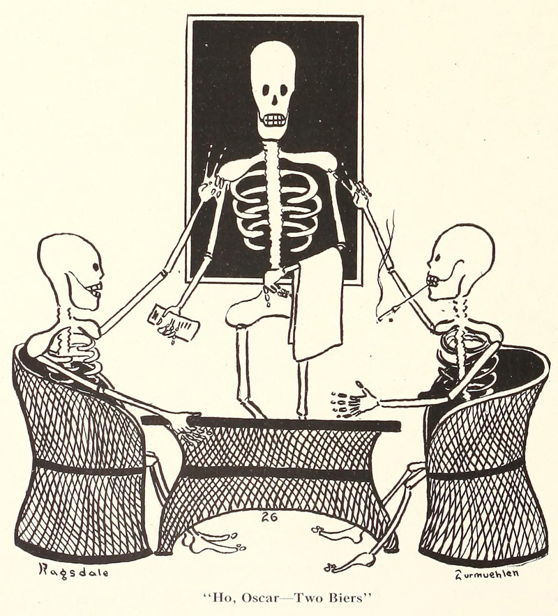#vintage illustration #skeleton #living dead #vintage yearbook #yearbook #1920s #illustration