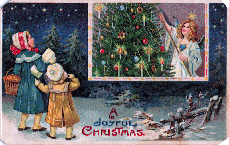 #vintage illustration #angel #christmas tree #vintage christmas #christmas #winter #vintage postcard #illustration #postcard