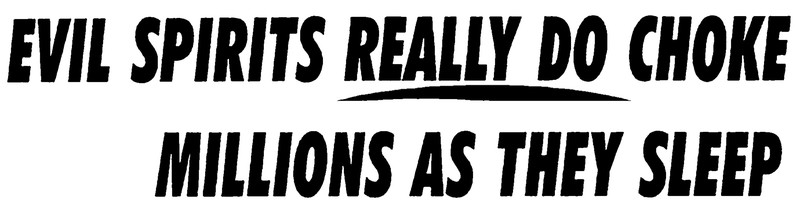 "Evil spirit really do choke millions as they sleep."  From Weekly World News, Dec. 19, 1995.