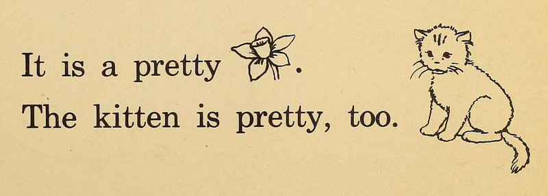 From A Vocabulary Preprimer Workbook to Accompany Skip Along, Under the Sky, Open the Door, and The New High on the Hill by Mabel O'Donnell, 1936.