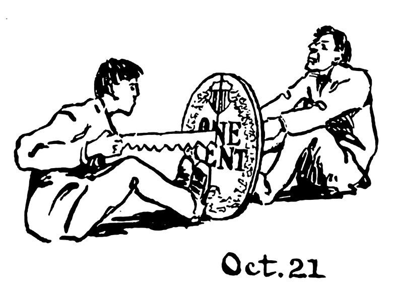 #vintage illustration #money #october #vintage yearbook #yearbook #saw #penny #1900s #illustration #oct. 21 #october 21