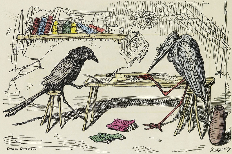 #vintage illustration #anthropomorphism #bird #1860s #illustration #smart animal