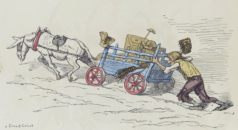 #vintage illustration #1860s #illustration #uphill #cart