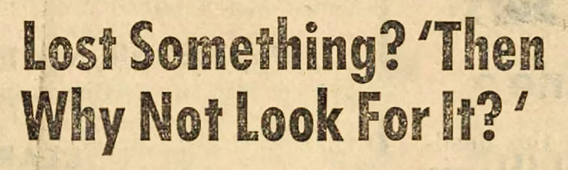 "Lost something? 'Then why not look for it?'"  From Current Sauce, 1966.