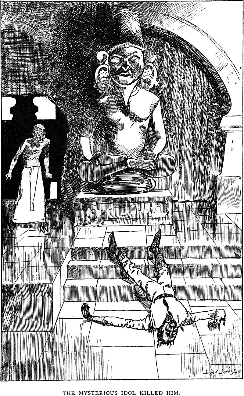 "The mysterious idol killed him," from The Adventures of a Stowaway by Frederick Whishaw, 1897.