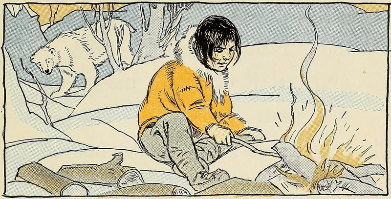 #vintage illustration #campfire #polar bear #eskimo #1930s #illustration