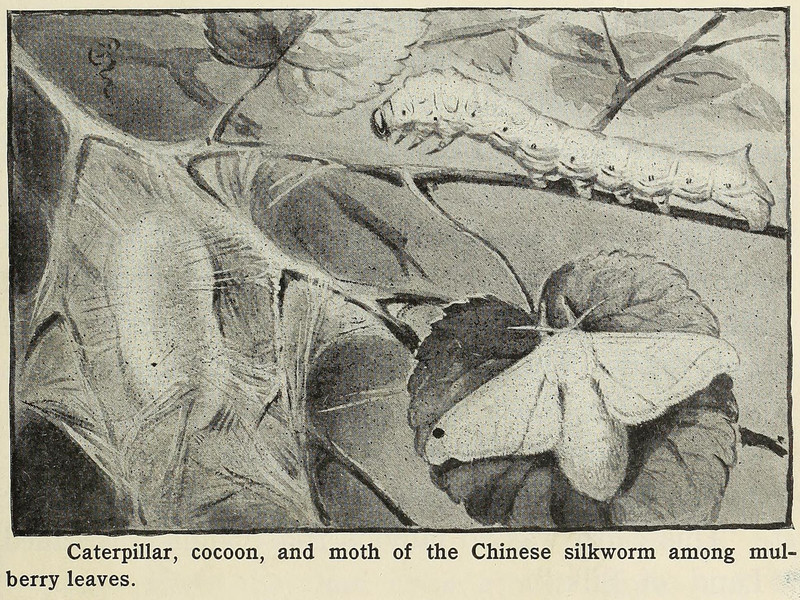 #vintage illustration #1920s #caterpillar #silkworm #illustration #moth #cocoon