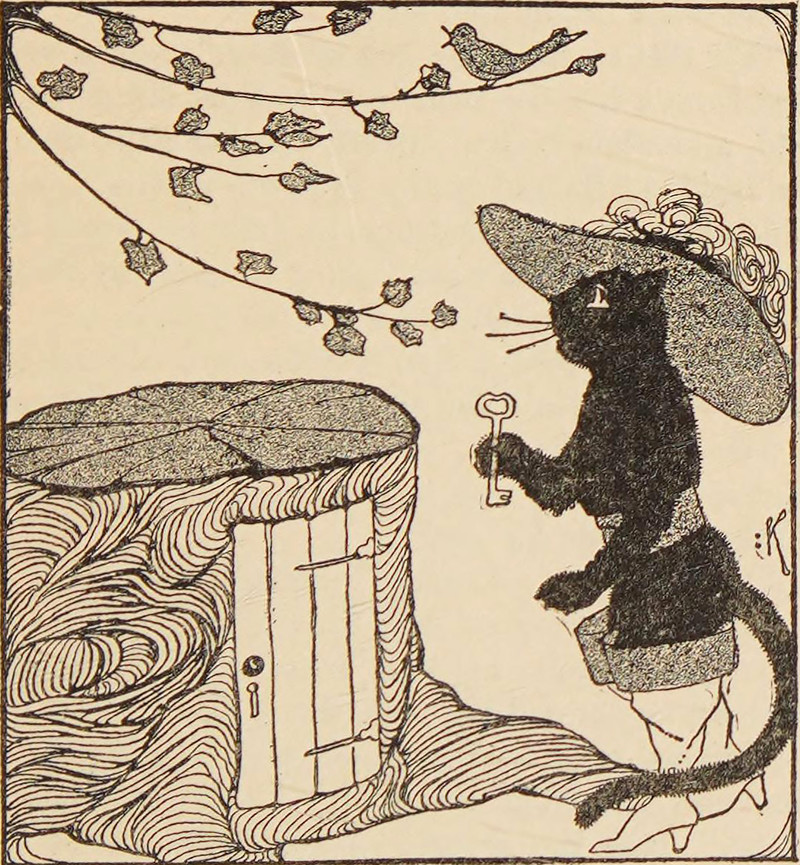 #vintage illustration #anthropomorphism #cat #puss in boots #illustration #hollow tree #1910s