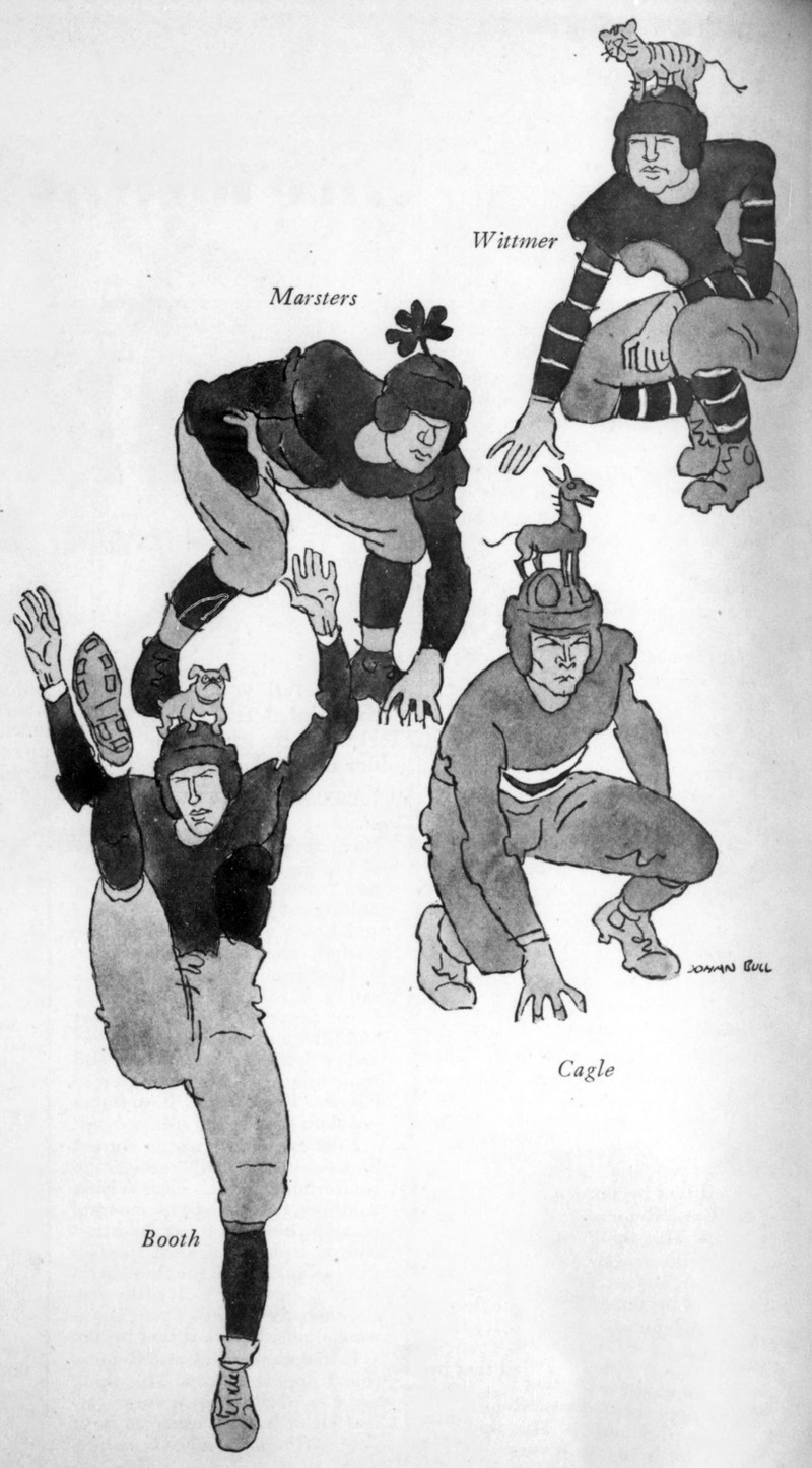 From the era before football helmets could be imprinted with logos.  From the New Yorker, 1929.