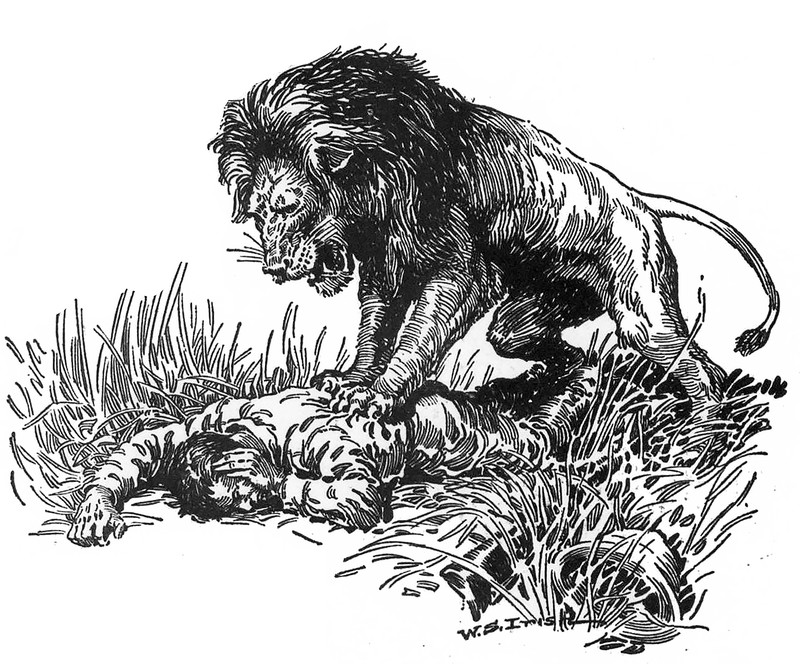 #vintage illustration #animal attack #lion #1920s #illustration