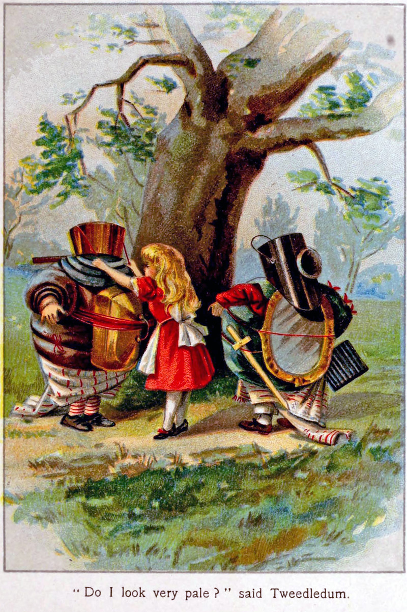 #vintage illustration #through the looking glass #alice in wonderland #illustration #armor #tweedledee #tweedledum #1910s