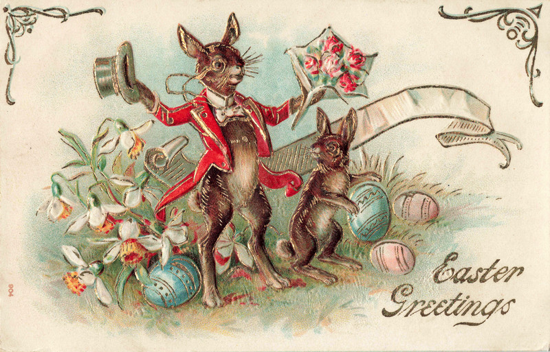 #vintage illustration #anthropomorphism #easter bunny #rabbit #bunny #easter #vintage postcard #illustration #easter egg #easter rabbit #postcard