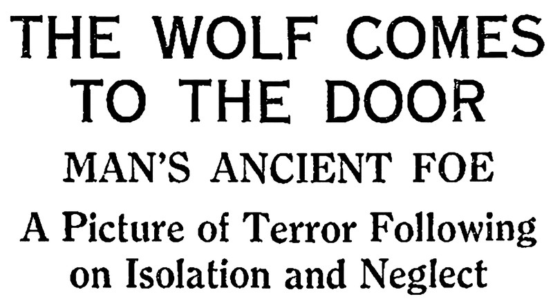 "The wolf comes to the door.  Man's ancient foe.  A picture of terror following on isolation and neglect."  From The Children's Newspaper, 1925.