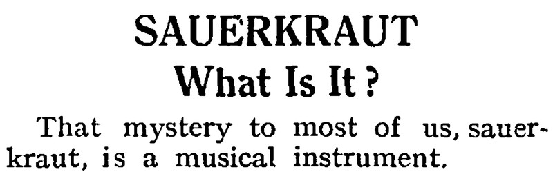 Sauerkraut is a musical instrument.  From The Children's Newspaper, 1926.