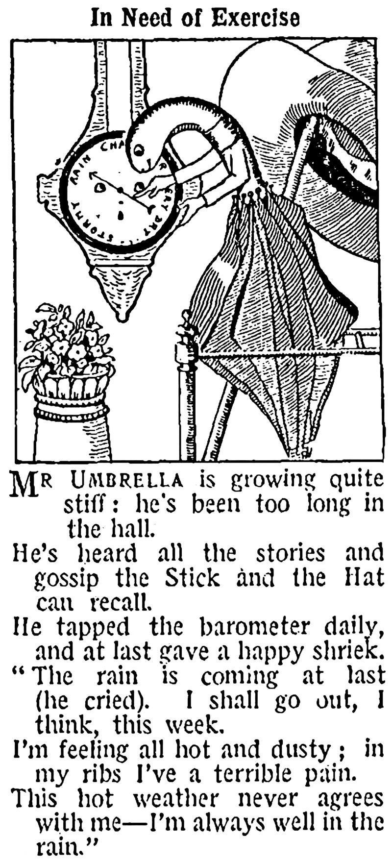 #vintage illustration #anthropomorphism #umbrella #barometer #1930s #illustration #poem