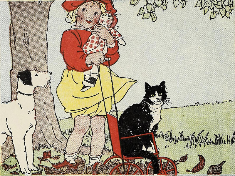 #vintage illustration #cat #dog #1900s #illustration #doll