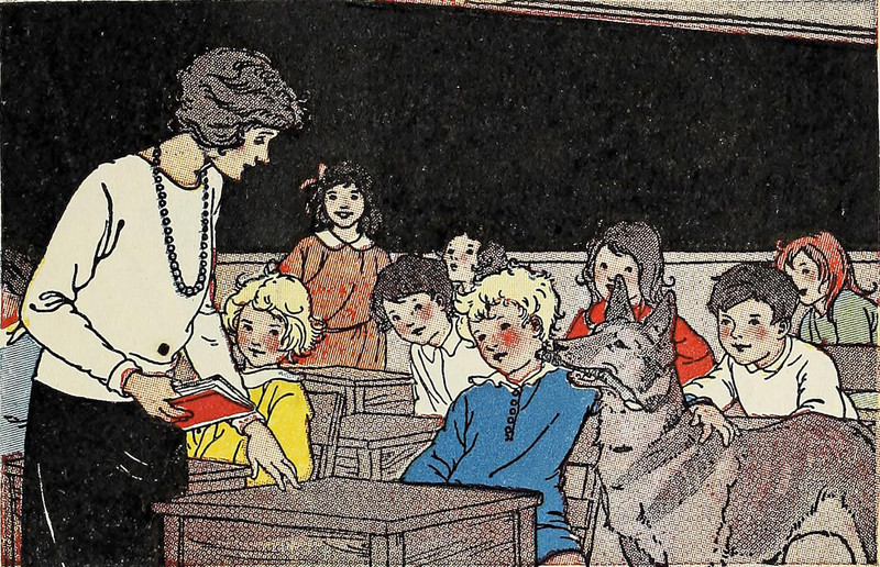 Today's learned dog is from Friends, a Primer by Pennell, Cusack, Macleod & Gates and illustrated by Marguerite Davis, 1900.