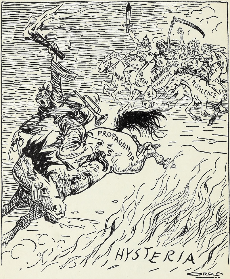 #vintage illustration #political cartoon #hysteria #apocalypse #four horsemen #1940s #propaganda #illustration