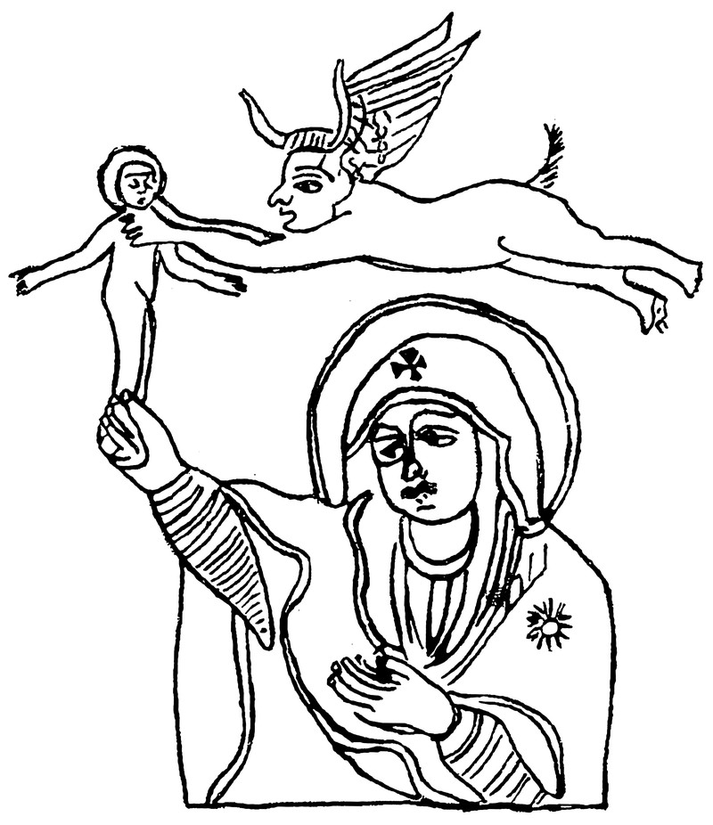 From The Book of the Miracles of the Virgin Mary, inĀ Amulets and Superstitions by E. A. Wallis Budge, 1930.