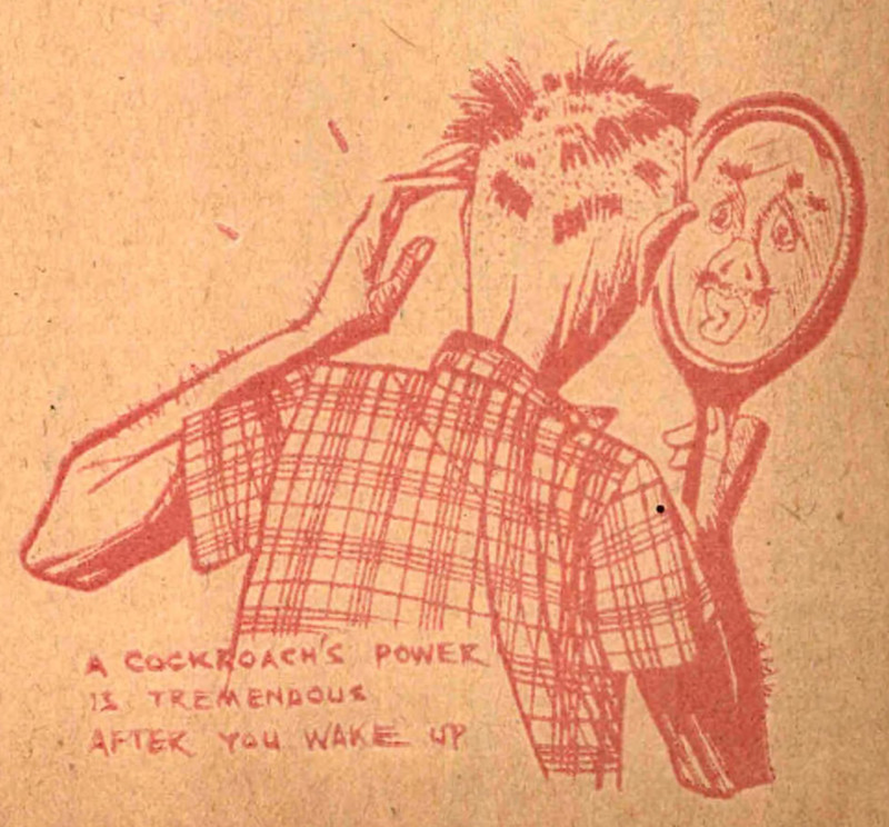 "A cockroach's power is tremendous after you wake up."  From Amrita Bazar Patrika, 1949.