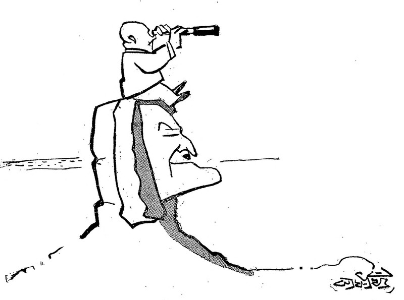 #vintage illustration #political cartoon #sphinx #telescope #1960s #illustration