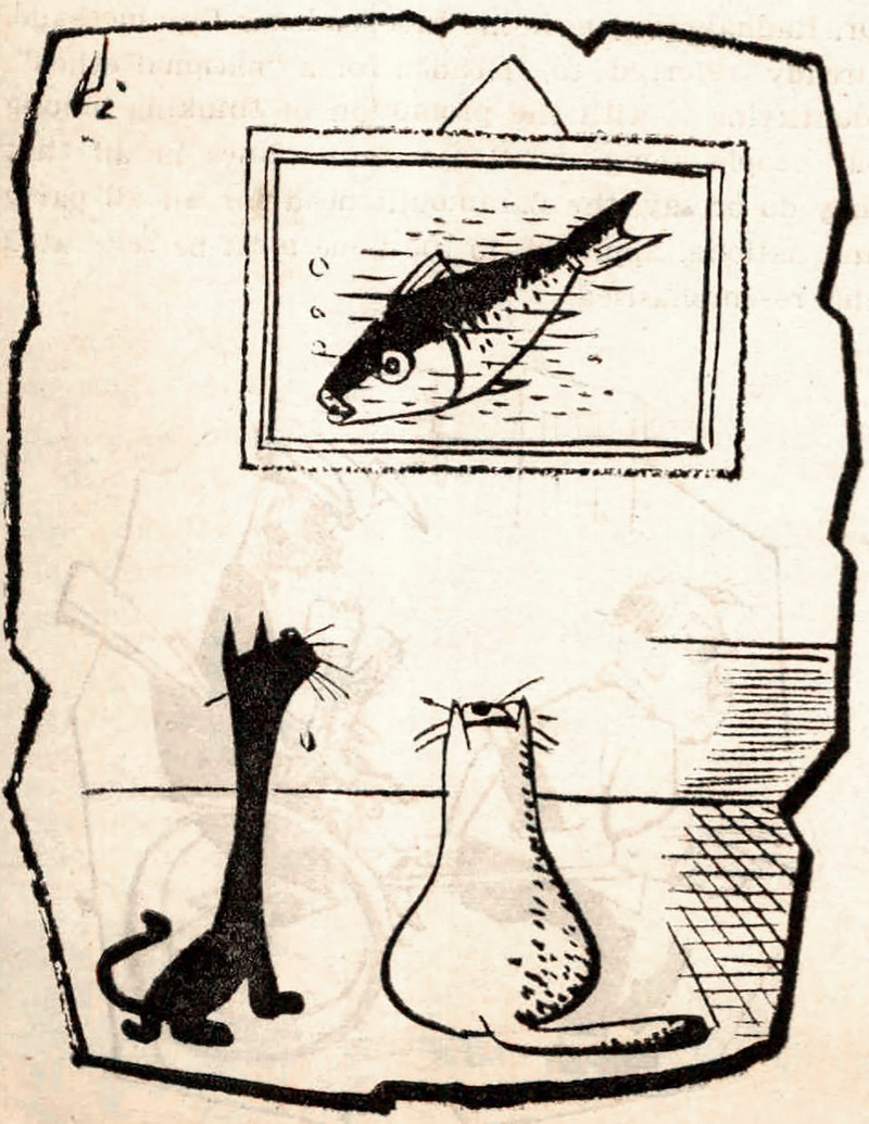 #vintage illustration #cat #fish #1960s #illustration