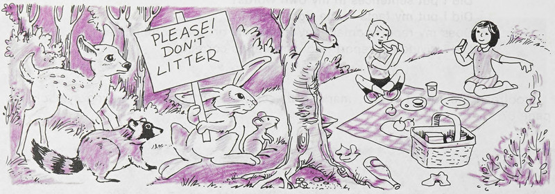 #vintage illustration #anthropomorphism #picnic #1970s #illustration #litter
