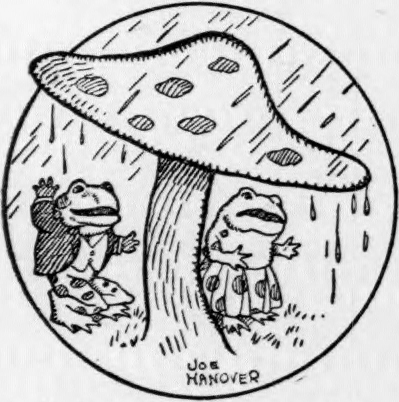 #vintage illustration #anthropomorphism #rain #rainy day #frog #mushroom #1900s #illustration