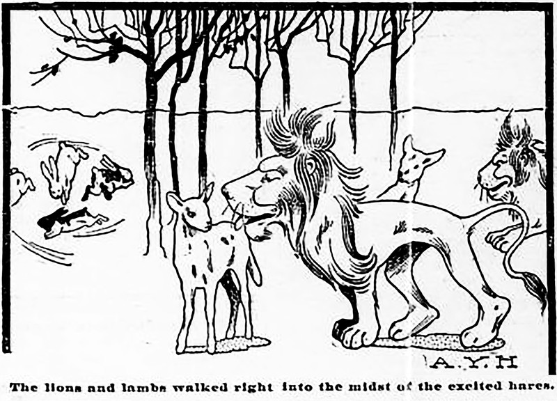 "The lions and lambs walked right into the midst of the excited hares."  From the Duluth Evening Herald, 1907.