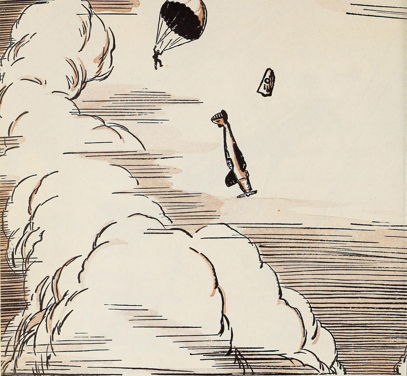 #vintage illustration #falling #1940s #airplane #illustration #parachute