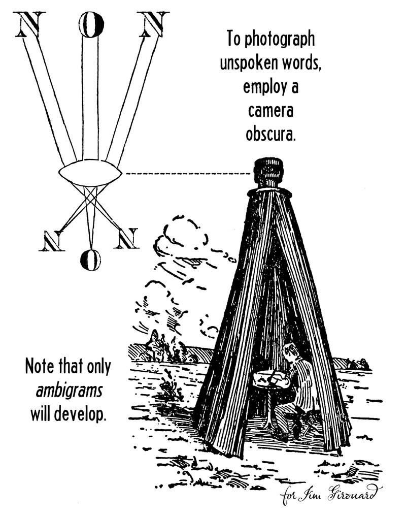 "To photograph unspoken words, employ a camera obscura.  Note that only ambigrams will develop."  [Inspired by and for Jim Girouard.]