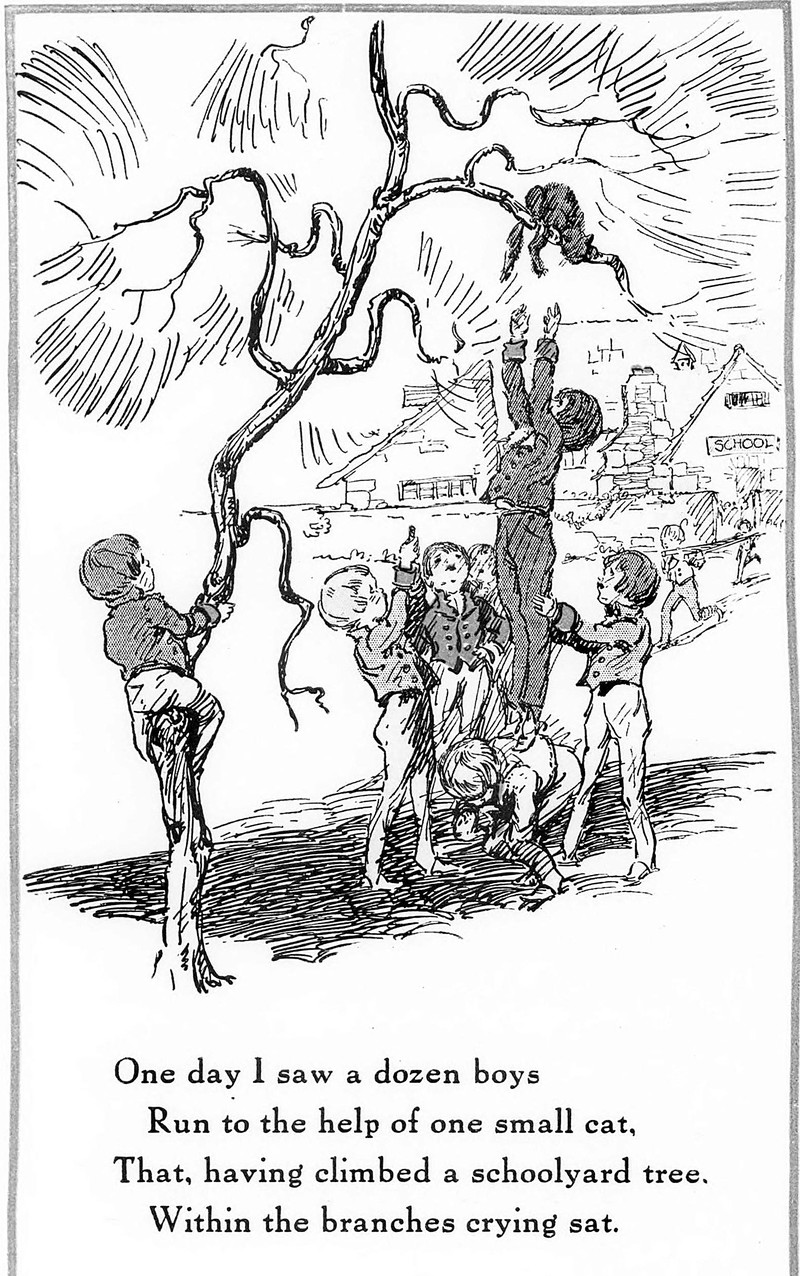 #vintage illustration #cat #1920s #animal rescue #illustration #up a tree #poem
