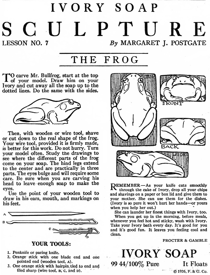 #vintage illustration #vintage ad #frog #sculpture #1920s #illustration #soap #ad #soap sculpture