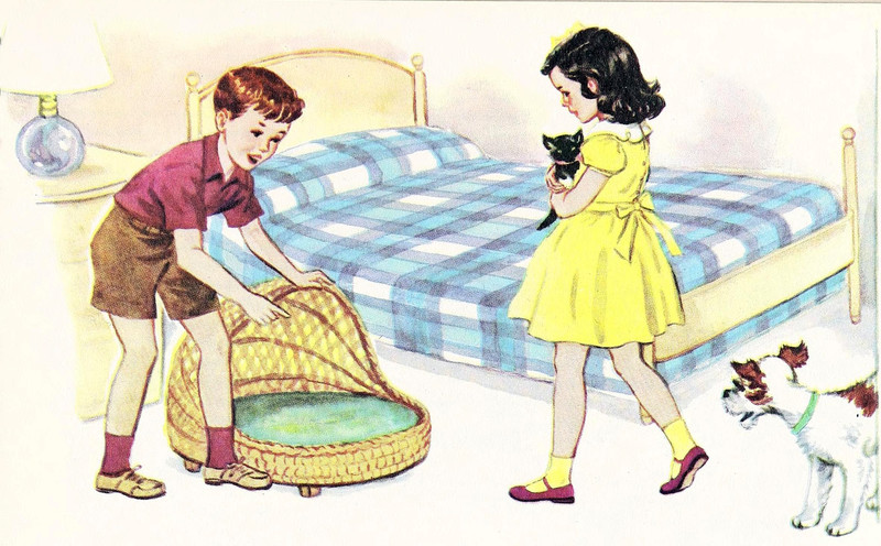 #vintage illustration #cat #dog #illustration #1950s